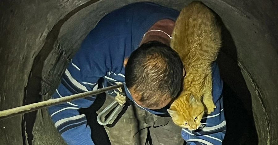 Рятувальники за допомогою драбини та рятувальної мотузки підняли чоловіка разом із котом на поверхню. На щастя, і котик, і його рятівник - у безпеці, ніхто не постраждав.