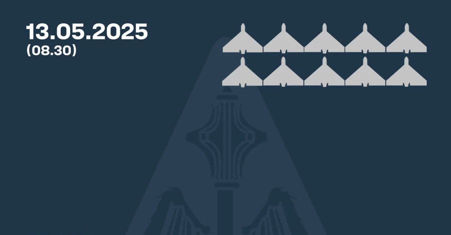 У ніч на 13 травня росіяни атакували 10 ударними БпЛА типу Shahed і безпілотниками-імітаторами різних типів. Як повідомили у Повітряних силах ЗСУ, ворог атакував із Приморсько-Ахтарська.