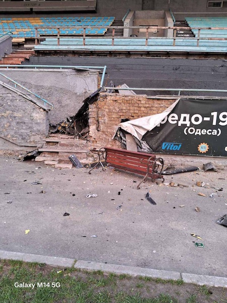 У Києві через російський удар постраждав міський стадіон "Спартак". Директорка департаменту молоді та спорту КМДА Юлія Хан зазначила, що на території стадіону знайдено уламки безпілотного апарата, що спричинили пошкодження споруди.