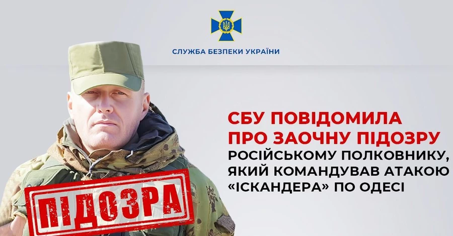 Служба безпеки України повідомила про заочну підозру російського полковника, який командував ударами ракети "Іскандер" по Одесі у квітні 2024 року. Про це повідомляє пресслужба СБУ.