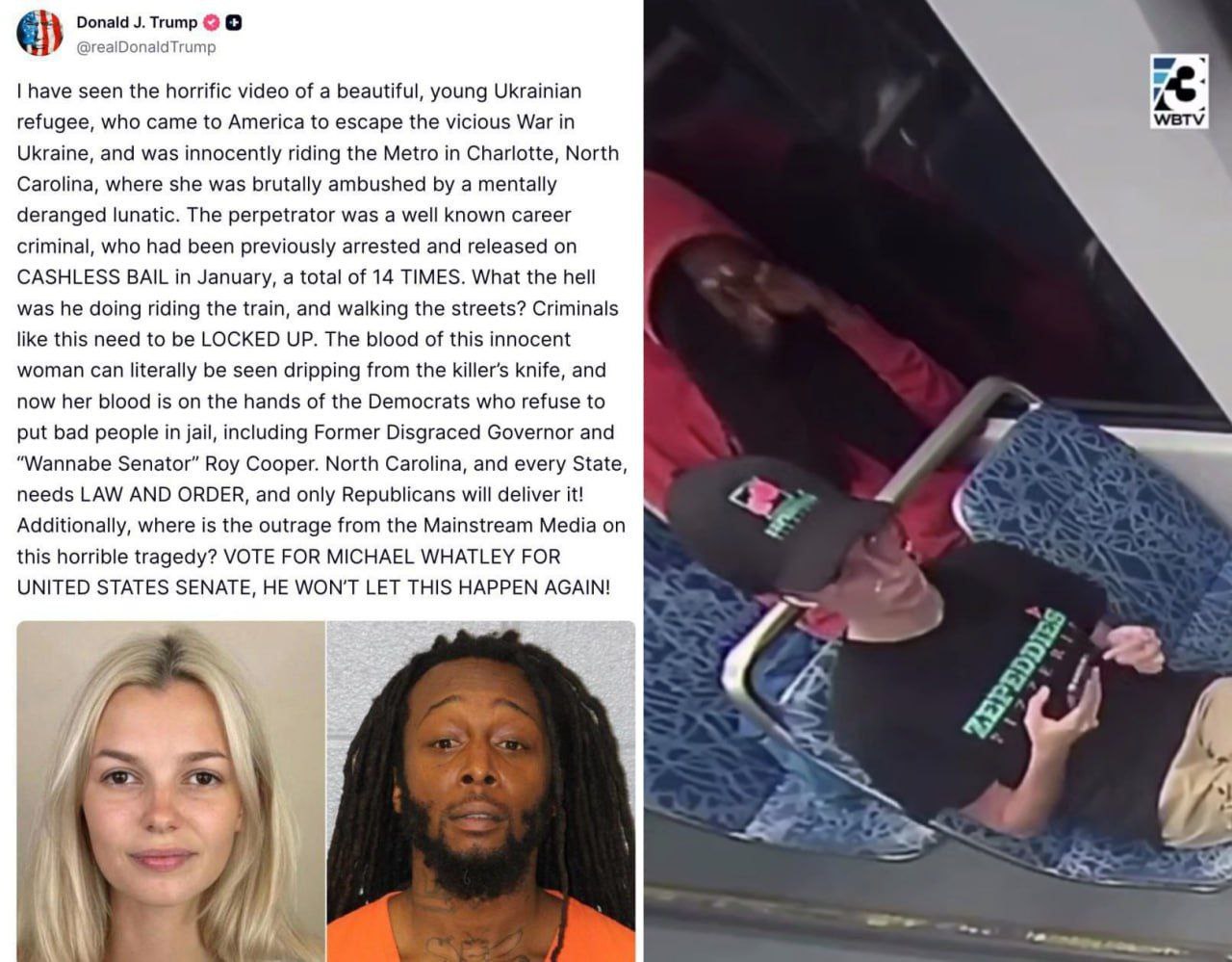- Що, чорт забирай, він робив у поїзді та на вулиці? Таких злочинців потрібно замикати у в’язниці. Кров цієї невинної жінки буквально видно на ножі вбивці, а тепер її кров на руках демократів, які відмовляються саджати поганих людей у тюрму, включно з колишнім ганебним губернатором і „самопроголошеним кандидатом у сенатори“ Роєм Купером, - написав Трамп.