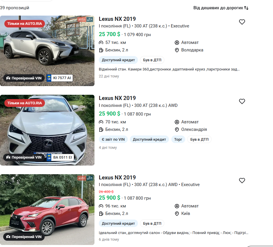Задекларована вартість авто – 845 000 гривень (дещо більше $20 000). Однак, виходячи з актуальних пропозицій ринку, на сьогодні мінімальна ціна подібного автомобіля стартує від $25 700.
