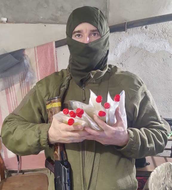 Коли Настя зрозуміла, що грілки потрібні на фронті, вирішила не зупинятися. Закупила партію дой-паків та 25-кілограмовий мішок ацетату натрію. У процесі випливали нюанси. Наприклад, є безводний і водний ацетати натрію. Спочатку використовувала безводний, але коли він зник з продажу, перейшла на водний. А щоб грілки відрізнялися – дівчина додає у воду барвник.