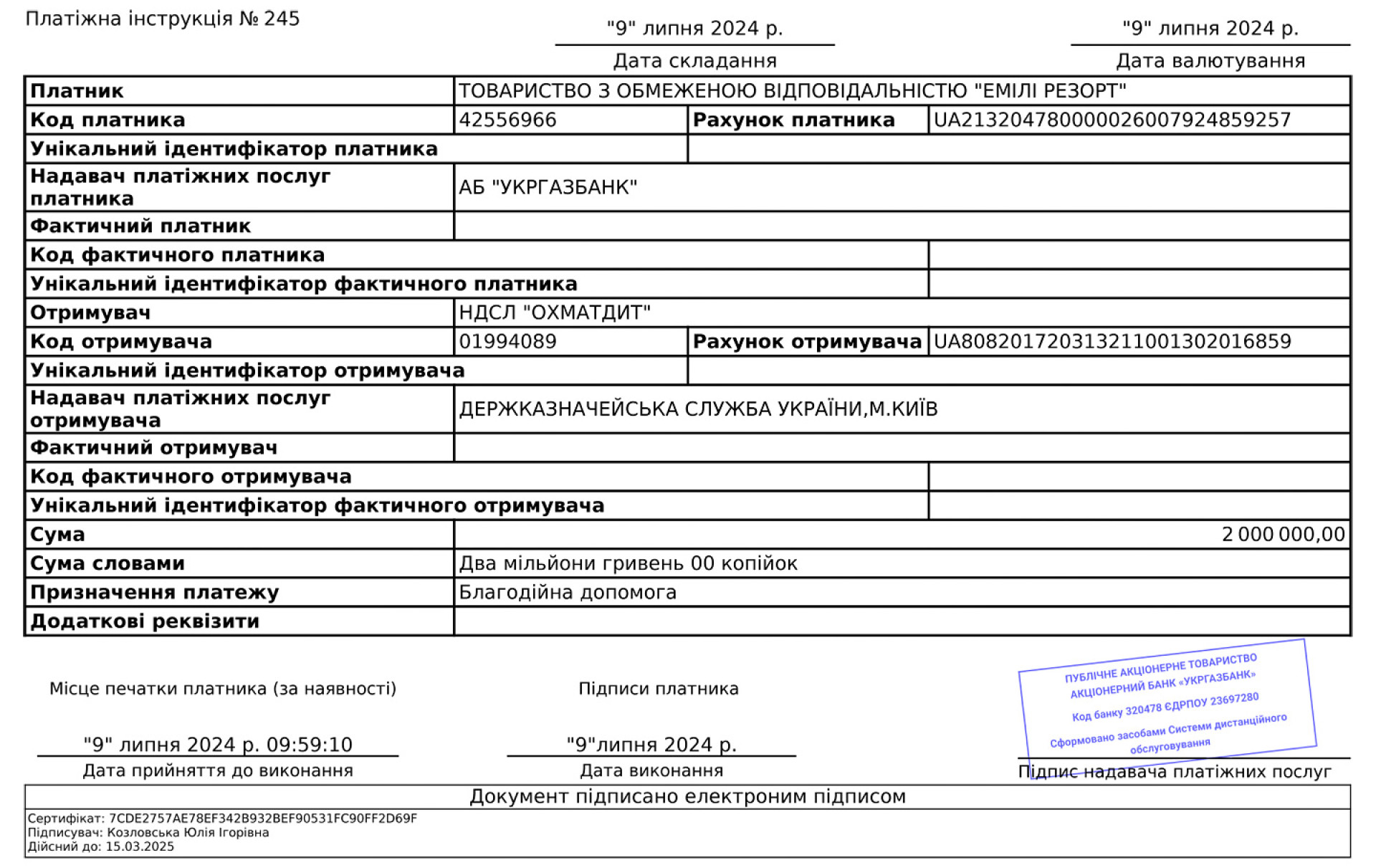 Засновник ФК «Рух» Григорій Козловський та відпочинковий комплекс Emily Resort перерахували 2 мільйони гривень на допомогу дитячій лікарні "Охматдит" в Києві, яка постраждала від російського ракетного обстрілу 8 липня.