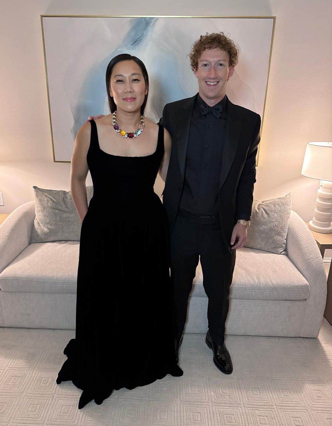 - Оптимістичний і святковий, - підписав світлину Цукерберг, на якій він стоїть поряд зі своєю дружиною Прісцилою Чан. При цьому на ній елегантна чорна сукня з глибоким вирізом на лінії декольте, а сам Цукерберг обіймає кохану.