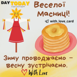 Вітаю з Масницею! Нехай цей тиждень принесе у вашу оселю достаток, любов та гарний настрій. Бажаю, щоб млинці виходили рум’яними, а серце було зігріте турботою рідних!