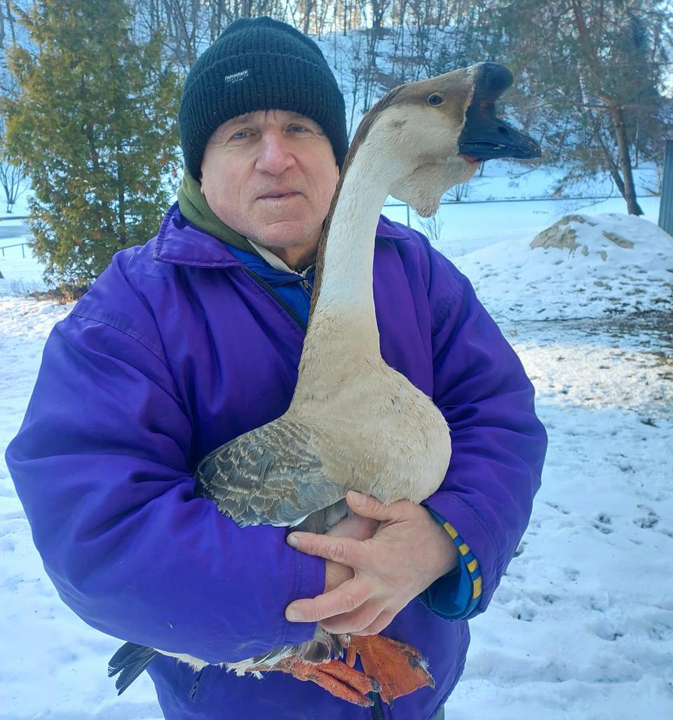 - Я вже вивіз гусей, що жили біля Межигірського монастиря, роздав по приватних господарствах, як і домашніх качок, що ми їх тут виходжували. Зі сльозами з тими гусями прощався, такі вони були… Дрібних птахів за сприяння добрих людей тимчасово пристроїв у підвальному приміщенні, - розповідає Григор’єв. - Порозвозив по різних дворах тачки, інше господарське приладдя. У Межигір’ї залишилися ще пара страусів - вони належать військовому, який зараз "на передку", і 70 голубів.
