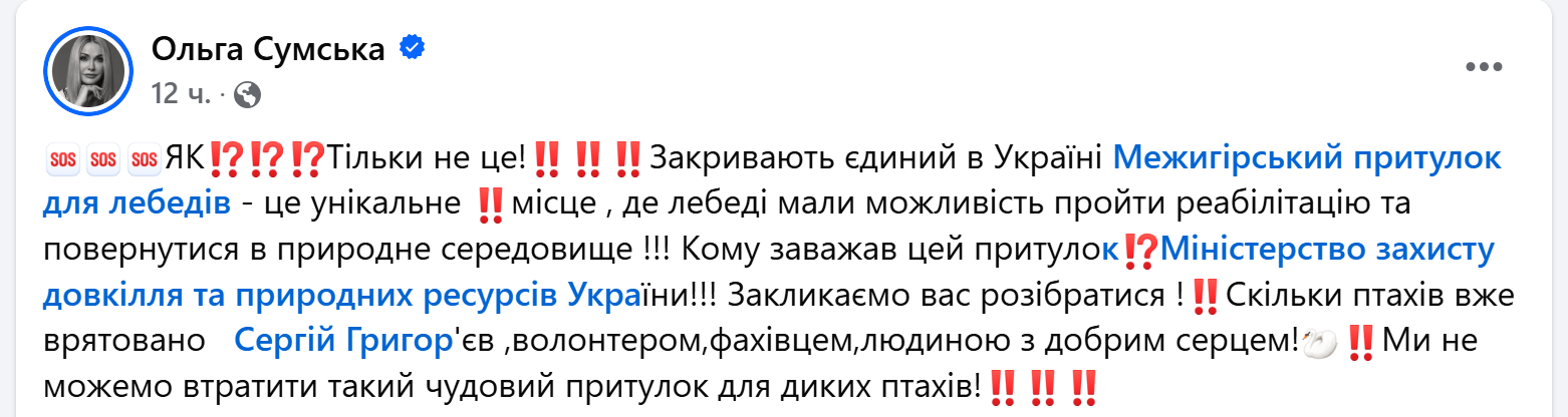 Новину про закриття притулку поширив сам Сергій Григор’єв, назвавши її сумною. За його словами, лебеді, що мешкали на території парку, перейшли у власність адміністрації, нових птахів на реабілітацію більше тут не братимуть. Людям, які зверталися щодо порятунку лебедів останніми днями, біолог мусив радити інші благодійні організації, де лікують птахів. Але там не мають, де їх утримувати.