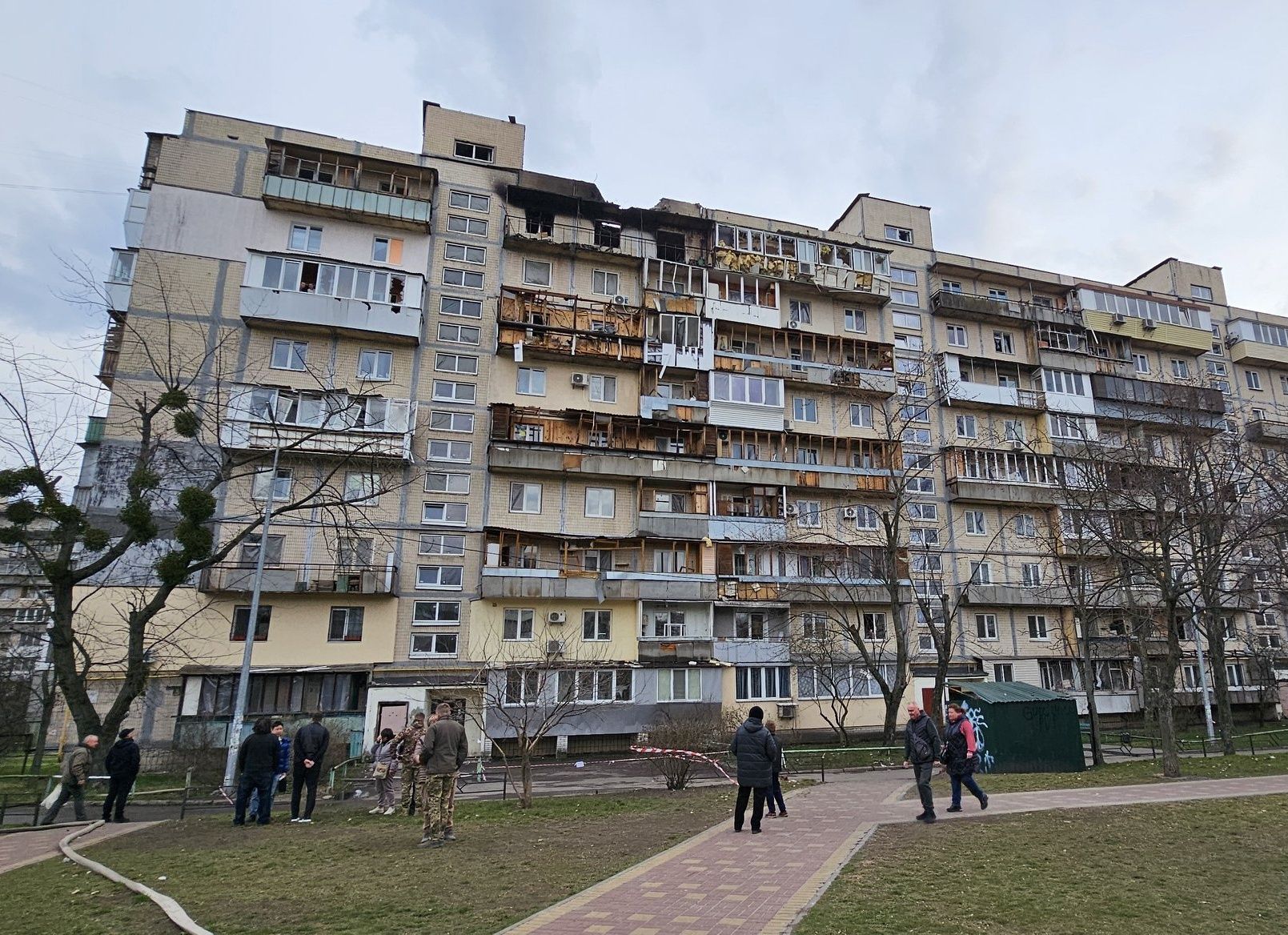 Той самий будинок в Дніпровському районі після влучення ворожого дрона. Фото: ФБ Наш дім – Березняки