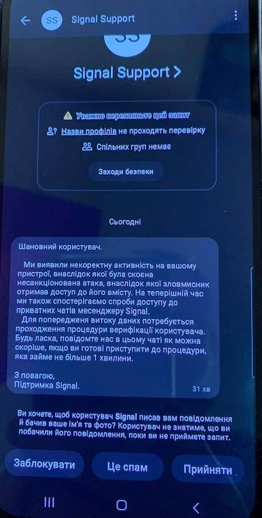 У тексті повідомлень користувачів лякають "хакерською атакою" та пропонують пройти "верифікацію".