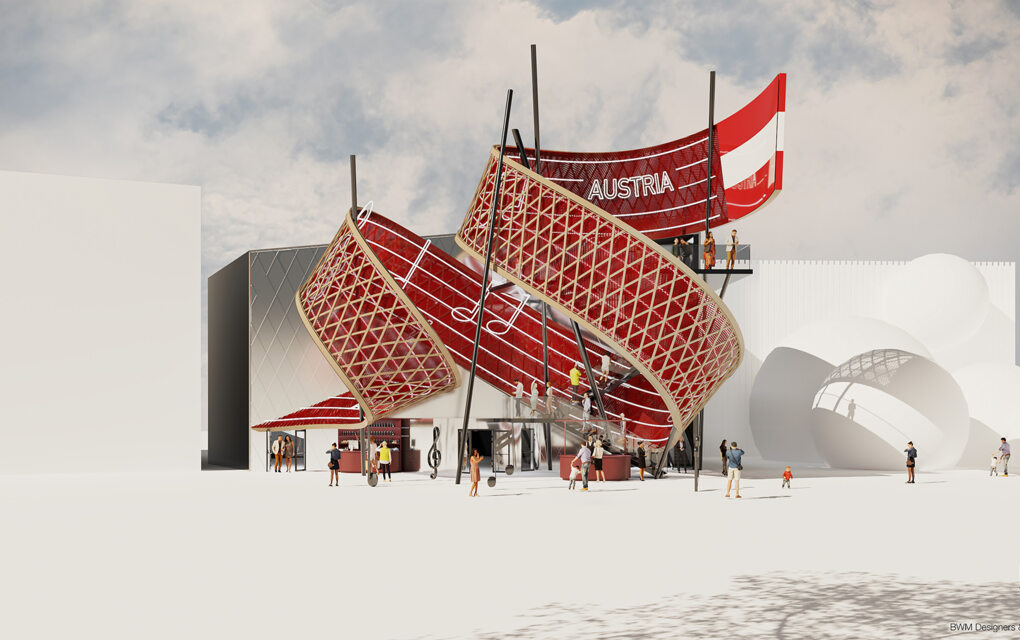 Особлива увага приділяється дизайну павільйонів кожної країни. В Австрії - акцент на «звуки Австрії». Фото: nussli.com