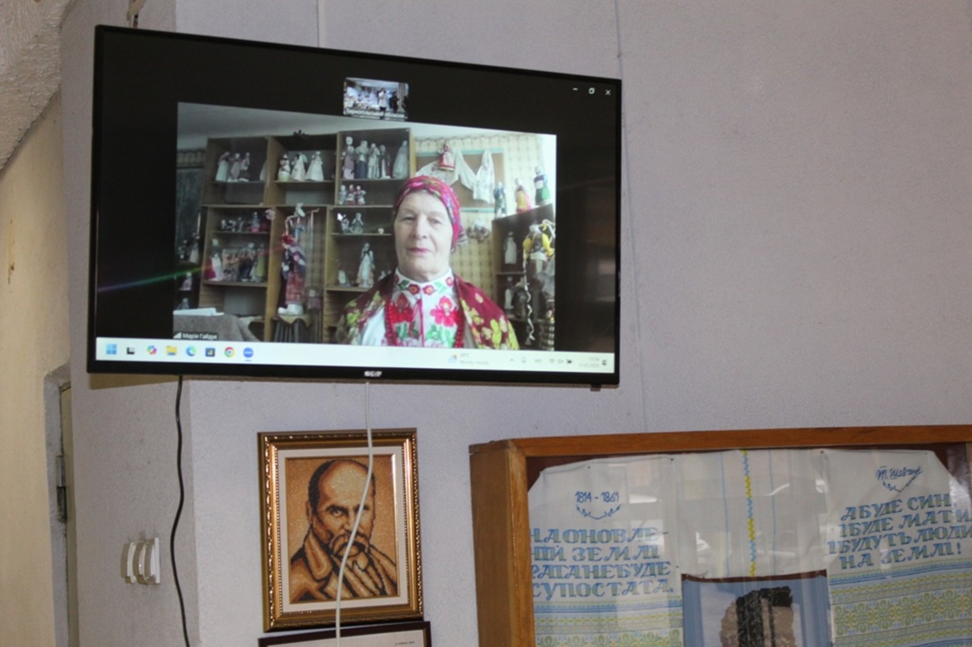 На виставці ляльок-мотанок у Тернополі Марія Миколаївна змогла бути присутньою через відеозв'язок. Фото: ФБ Тернопільський обласний краєзнавчий музей