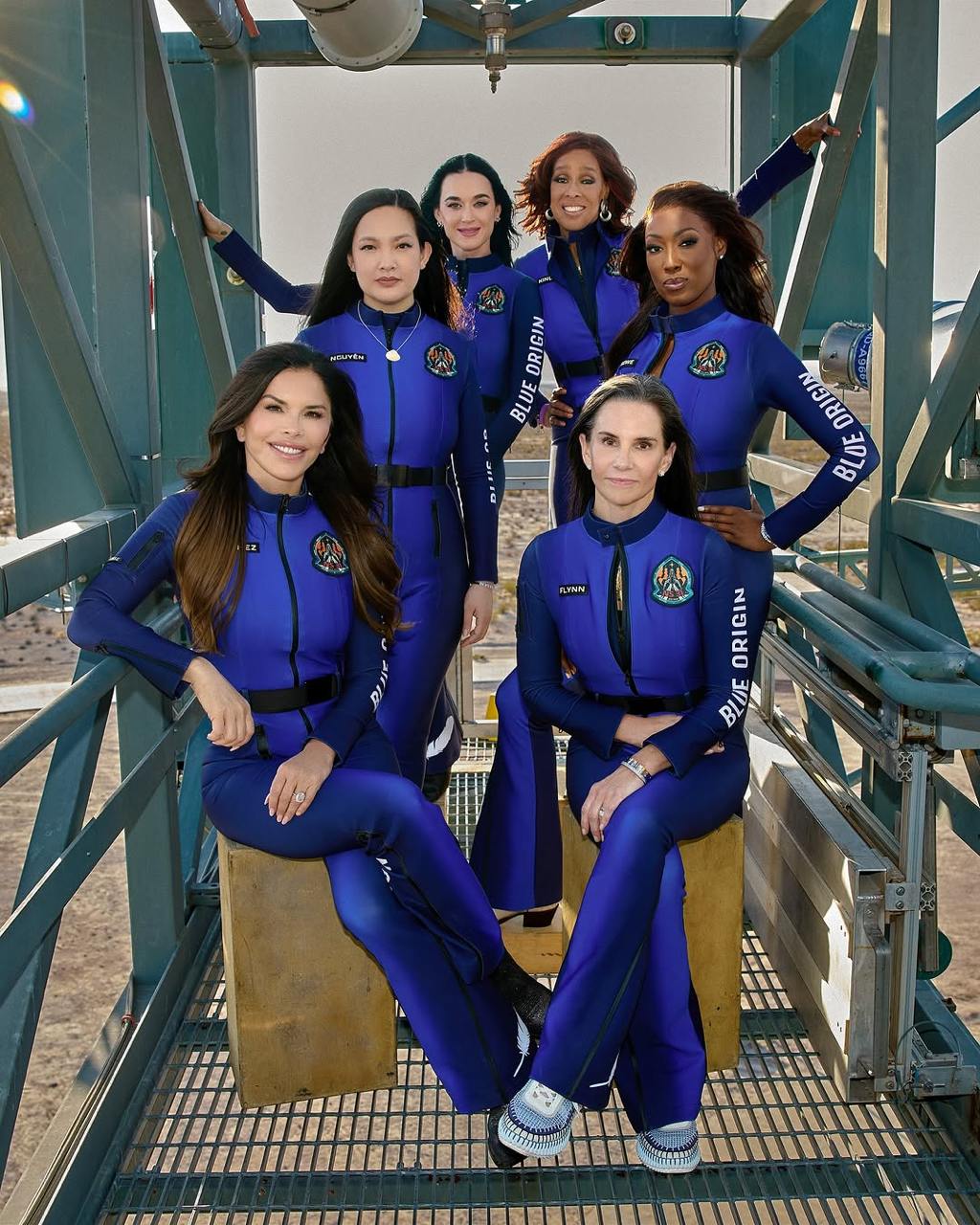 Своєрідний космічний «дівич-вечір» - Лорен Санчес (сидить зліва), Кеті Перрі, Гейл Кінг, Айша Боу, Аманда Нгуєн і Керієнн Флінн. Фото: інстаграм Кеті Перрі.
