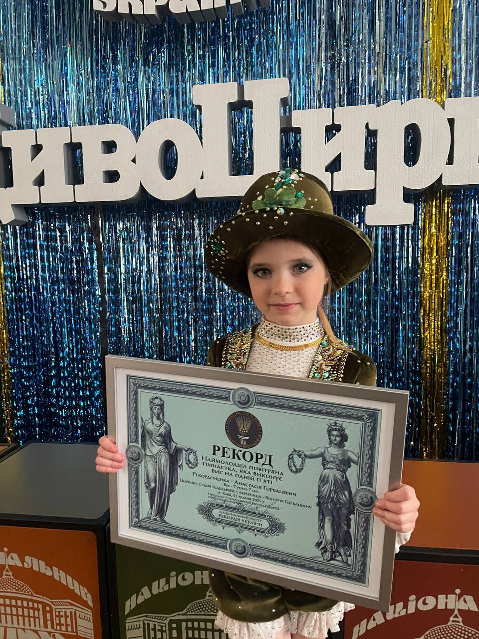 7-річна Анастасія Горбацевич із Запоріжжя стала рекордсменкою України у номінації «Наймолодша повітряна гімнастка, яка виконує вис на одній п’яті». Дівчинка виросла у родині циркових артистів і на арені - з трьох років. Вона дуже любить виступати в цирку і отримувати оплески глядачів. А цього разу їй аплодували ще й за приголомшливий рекорд, повідомила керівник Національного реєстру рекордів України Лана Вєтрова.