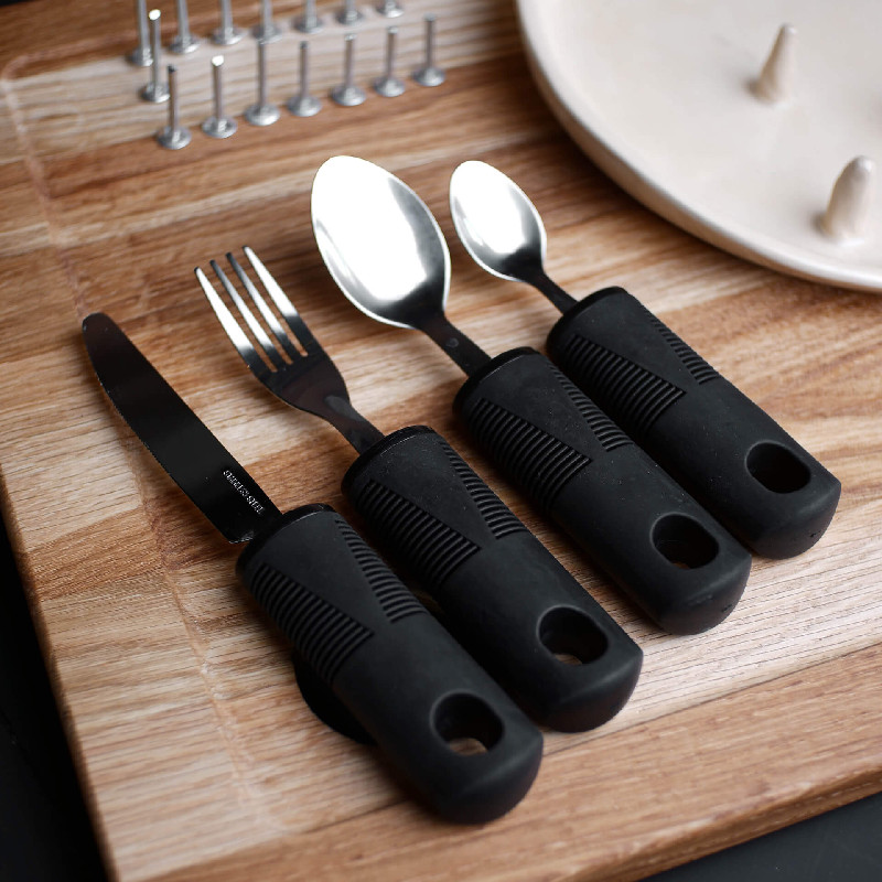 Зокрема, популярними є тарілки, якими зручно користуватись однією рукою (one-handed plate). У такої тарілки є кілька особливостей конструкції - вищі бортики, завдяки яким їжу простіше розділяти чи набирати прибором. На тарілці є штифти: між ними можна фіксувати продукти, щоб вони не ковзали, а також в них зручно намазувати хліб однією рукою. Основа тарілки має силіконові накладки, завдяки яким посуд не ковзає по столу.