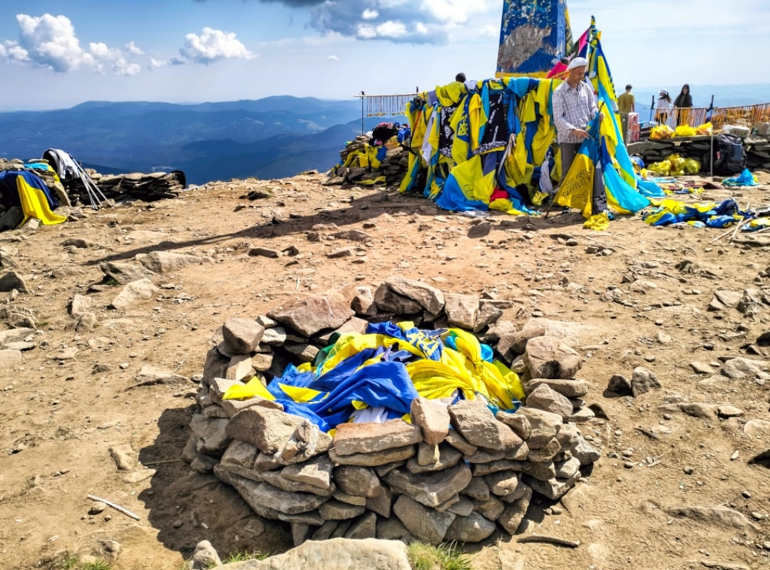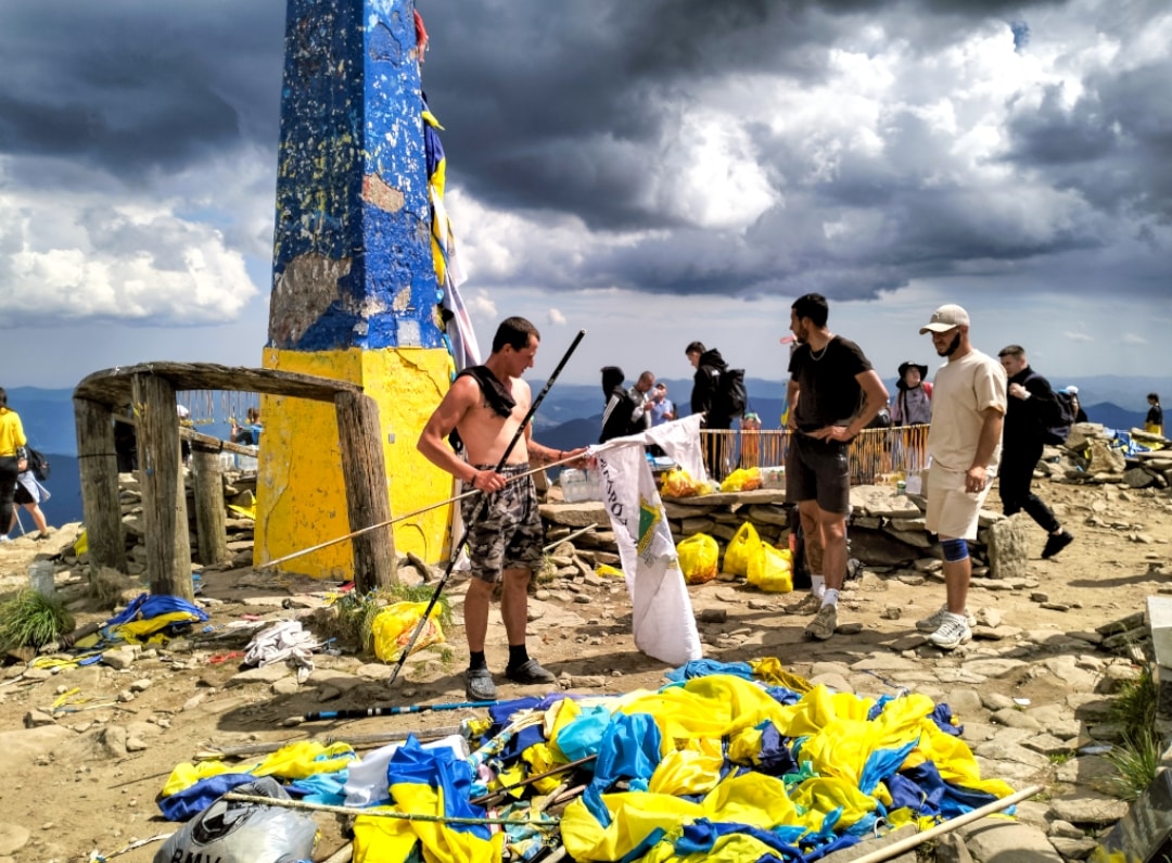 - Спірне питання, чи варто взагалі залишати на вершинах стільки прапорів, але розуміємо що ті які вже є — це частинки душі тих, хто їх туди приніс, особливо прапори з фронту та портретами полеглих героїв, тому залишимо їх там, де вони і були. Сміття, що залишилось від кріплення прапорів — дроти, хомути, мотузки — забрали і спустили, вивеземо, - запевнила Косовська.