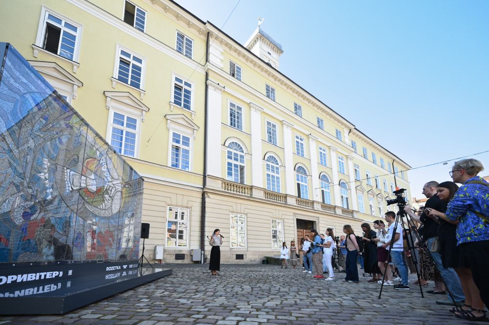 До Львова з Лондона привезли відтворену мозаїку Алли Горської «Боривітер». Панно простоїть на площі Ринок до 17 серпня, після чого відправиться до Харкова та інших міст. Про це розповіли у Львівській міськраді.