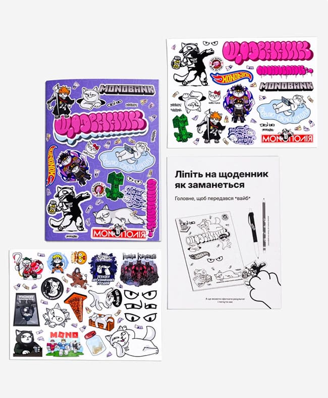 Згадаймо і про щоденник від Монобанку. Про нього мріють багато учнів. Яскравий, з величезною кількістю всіляких наліпок і на додачу ще й десять зошитів у комплекті. Все виглядає стильно, кастомізується і має QR-коди зі скінами та одягом для кота.