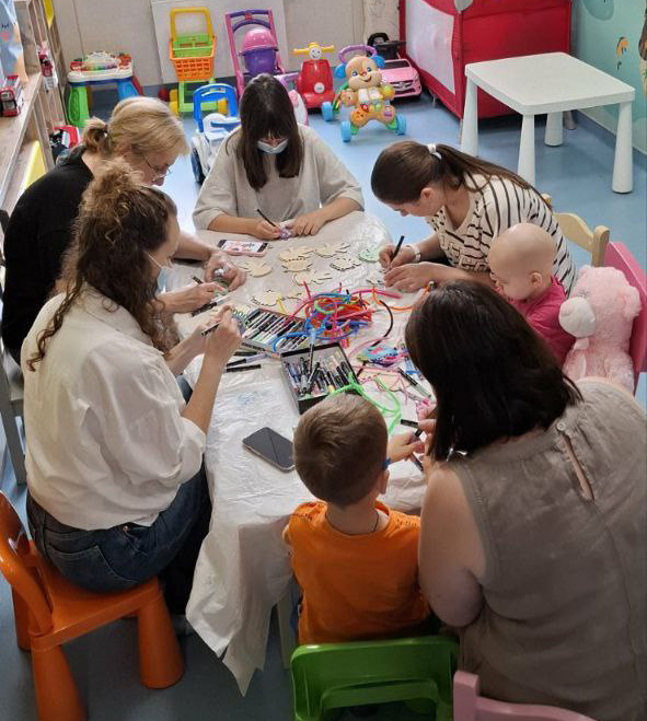 До кожної такої зустрічі вона готує майстер-клас – адже не лише розмовами душу втішати. Виготовляють та розмальовують різні вироби, прикрашають пенали, наносять трафарети, роблять мотанки, браслети, свічки – на такі майстер-класи навіть мами з відділення приходять.