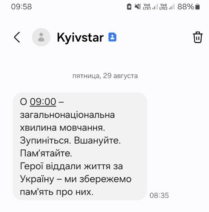 Мобільний оператор Київстар розіслав усім абонентам SMS-повідомлення, нагадавши про хвилину мовчання. А на сайті OLX з 08:30 до 9:01 працювали статичні банери зі згадкою про пам'ять воїнів. Протягом дня вони з'являтимуться знову.