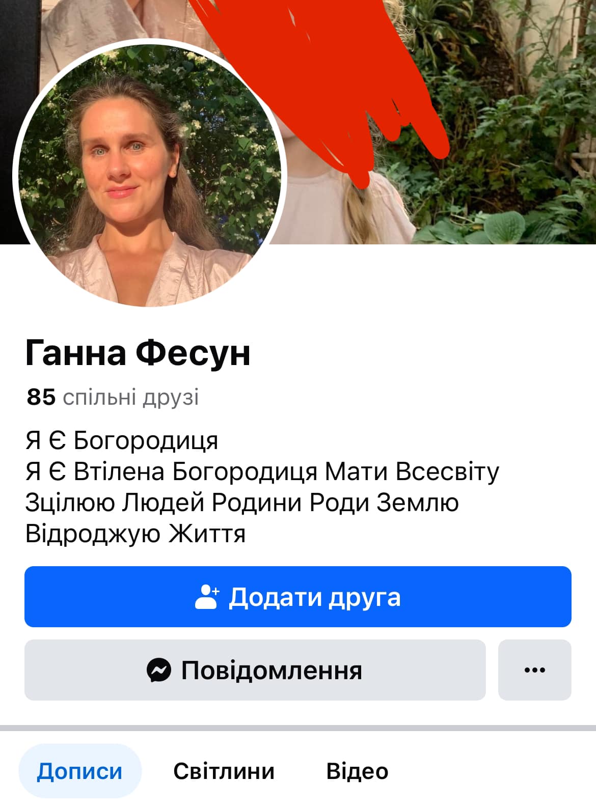 У жовтні 2024 року Україну облетіло ім’я колишньої власниці какаоварні Ганни Фесун, яка оголосила себе «Втіленою Богородицею, Матір’ю Всесвіту», цілителькою і відроджувателькою життя. Небайдужі люди з’ясували, що редакторка одного з видавництв збирає по всіх усюдах гроші, аби платити Фесун за енергетичну підтримку з Києва важкопораненого коханого, який на лікуванні у Німеччині. Ситуація була дуже заплутана, і досі до кінця не з’ясовано, існував чи ні боєць Інтернаціонального легіону на ім’я Дірк Альтйохан і чи перебував він у комі після боїв у Кринках. Але факт, що жінка влізла в шалені борги, щоб платити «Богородиці», підтверджували її родичі та знайомі.