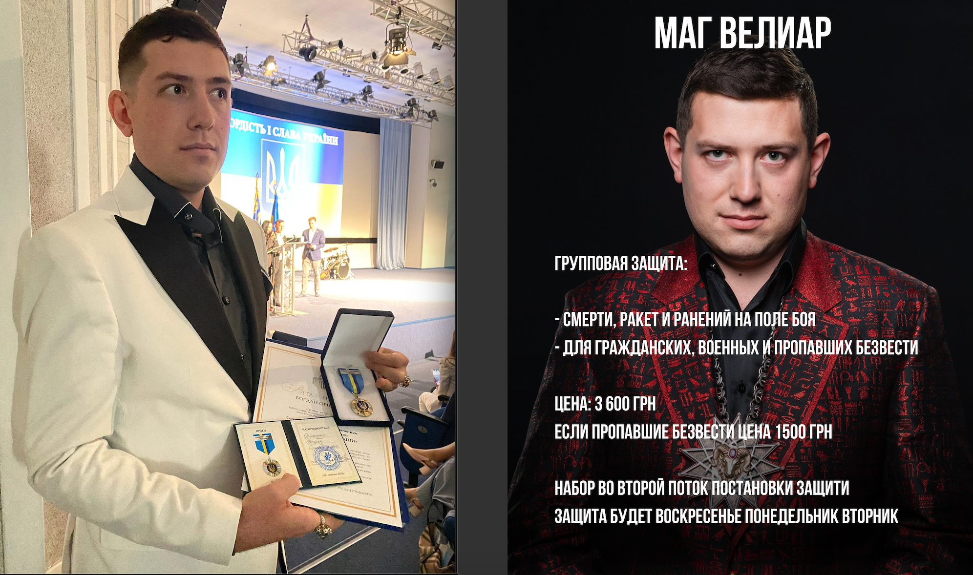 Веліар - він же Богдан Оріщенко - торгує послугами захисту для довірливого населення. Колаж з фото facebook.com/mag.veliar (http://facebook.com/mag.veliar)