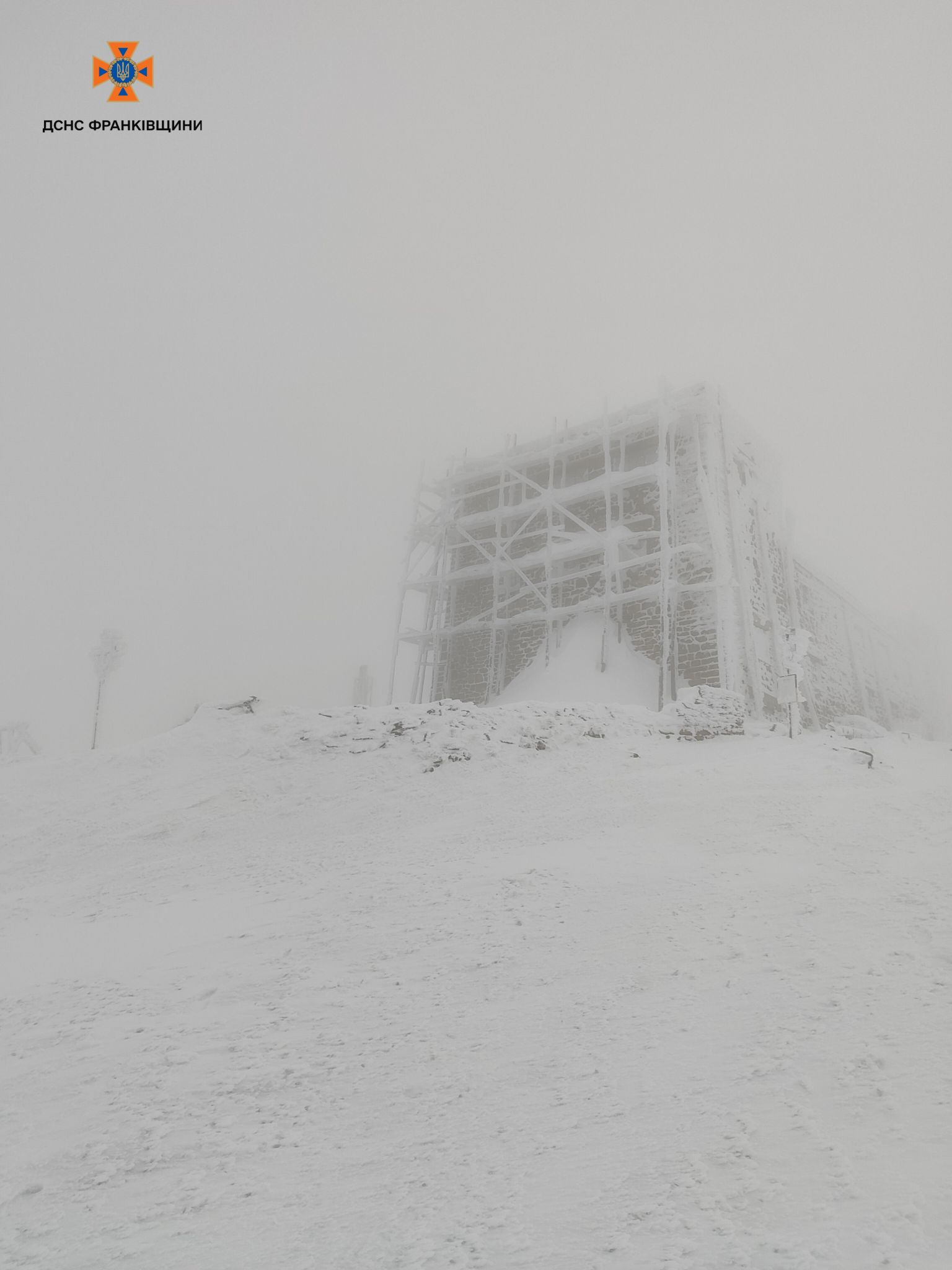 Як повідомили у Facebook гірські рятувальники Прикарпаття, станом на 8 годину ранку 6 січня на горі Піп Іван - хмарно, обмежена видимість до 50 метрів. Падає сніг, вітер південний 10 м/секунду, а температура повітря опустилася до -12°С.