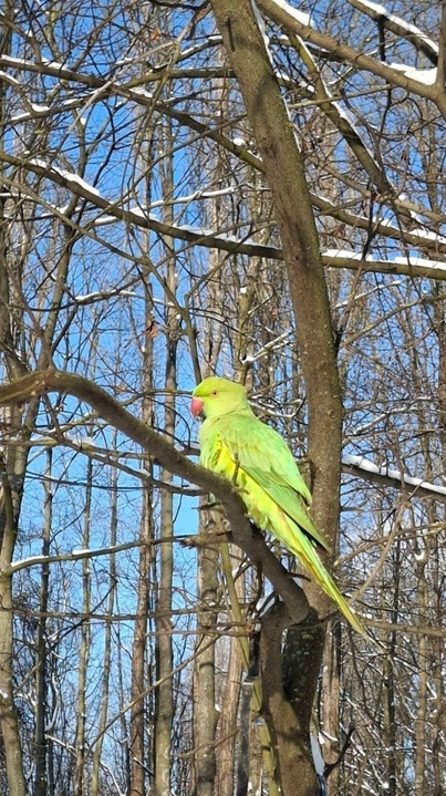 На вулиці мороз до мінус 15, а жителі Чернівців дивуються - на гілках дерев у парках можна зустріти яскраво-зелених папуг, які почуваються цілком комфортно. По-своєму щось цвірінькають, хвацько перестрибують з гілки на гілку, розправляють крила, ніби засмагаючи під променями січневого сонця. Здавалося б, екзотичні птахи мали б полетіти на зиму в теплі краї, але ні! Живуть собі й навіть розмножуються. Це папуги Крамера. Вони в Чернівцях ще з 2020 року. Життя у них непросте, але цікаве.