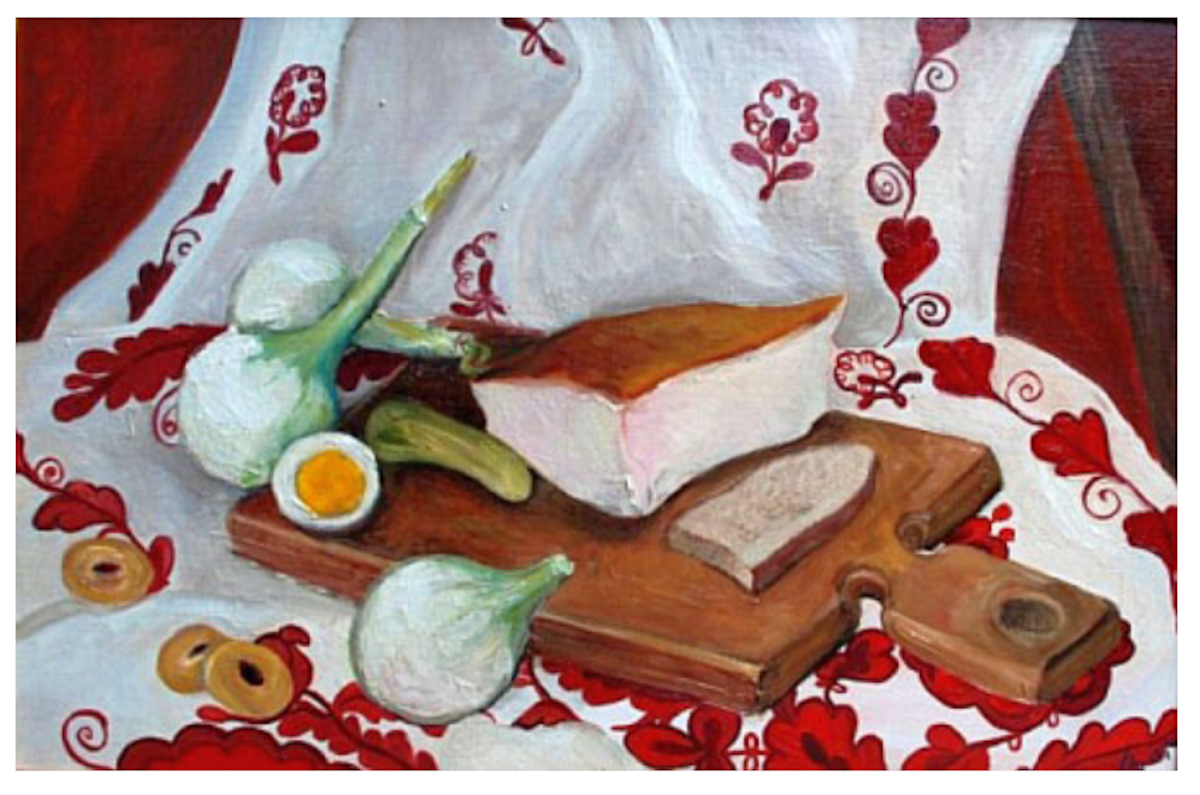 Раніше в неї була зовсім інша публічна версія їхніх стосунків: мовляв, цінує, підтримує, захоплений. Зараз же Зінаїда стверджує, що майже 20 років стоїчно терпіла претензії чоловіка та опиралася його подарункам. Навіть творила на орендованій квартирі, аби не дратувати чоловіка, і , о диво, дарує йому картину-сюрприз до дня народження: зображення шматка сала з романтичною назвою «Улюблене для коханого».