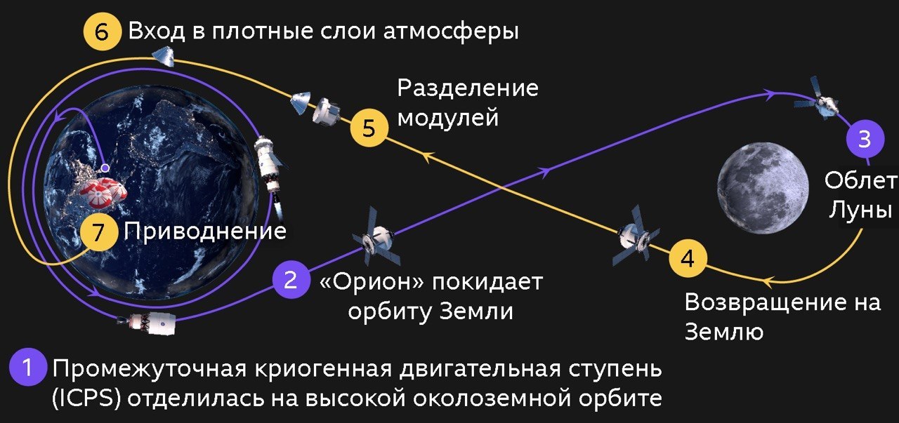 На зворотний шлях піде приблизно чотири дні, і цей завершальний етап місії є одним із найризикованіших. Для виконання фінального маневру модуль з екіпажем відокремиться від основної частини космічного корабля, а капсула розвернеться так, щоб її теплозахисний екран прийняв на себе основний удар і захистив екіпаж від надвисоких температур під час входу в атмосферу.