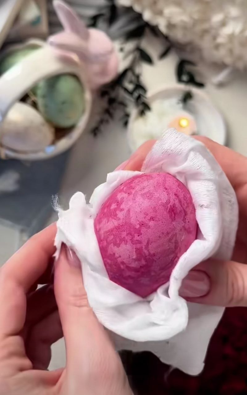 На шкаралупі, змазаній олією, фарба проявляється неоднорідно, а плямками різної величини. Фото: Скрин з tiktok.com/@romayemets/video/7622688085033110792?_r=1&_t=ZS-95Av8fsr8zM