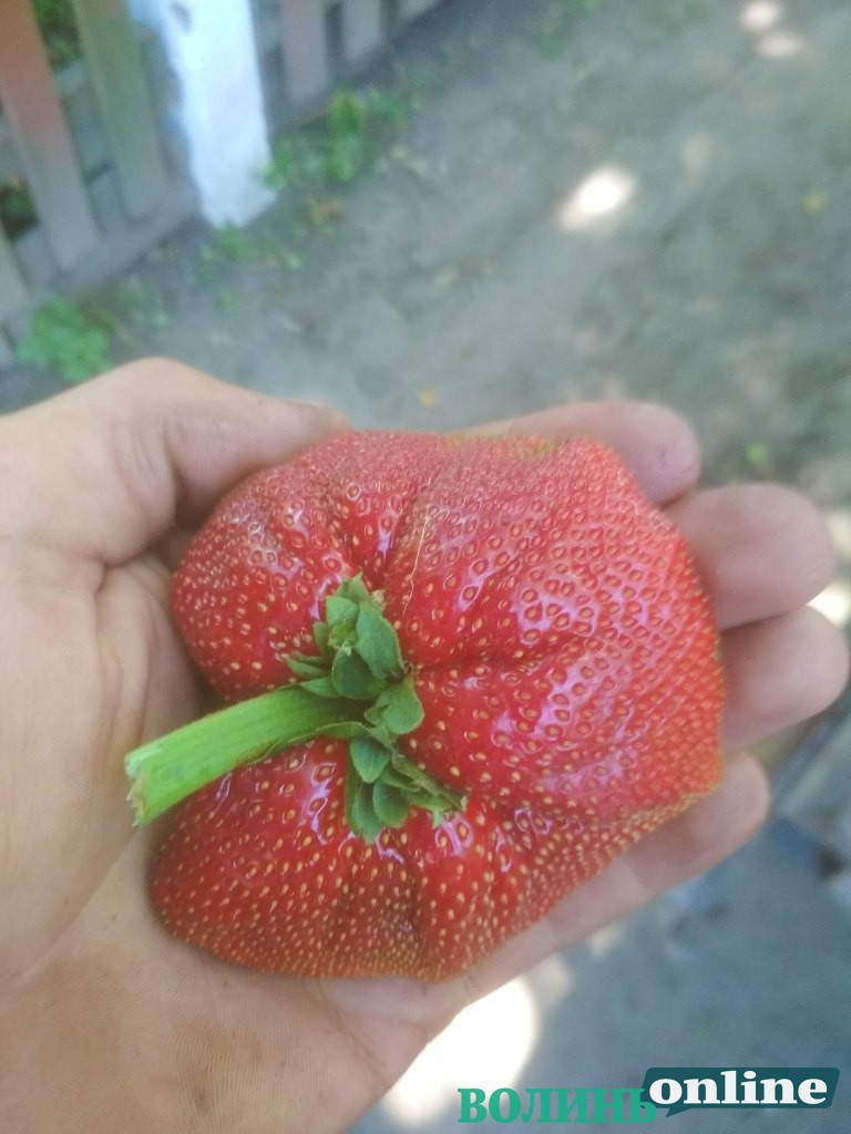 Хорохоринська полуниця зазвичай солодка та дрібна, але іноді зустрічаються і ягоди-гіганти. Фото: volynonline.com