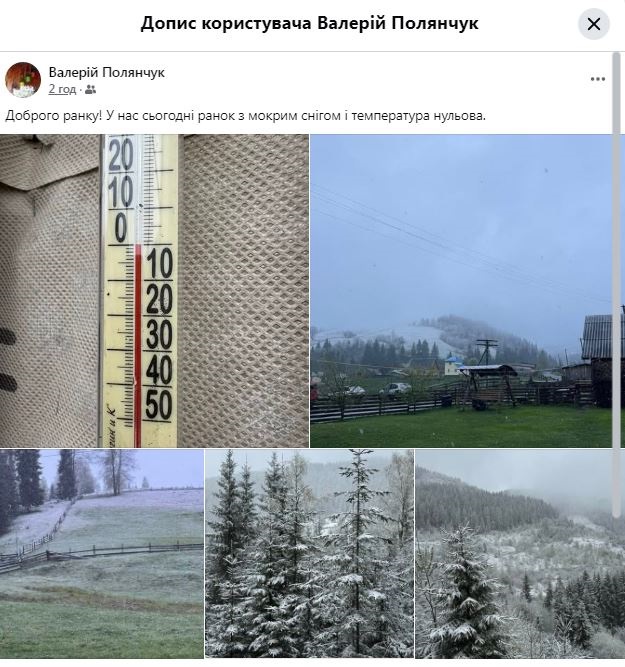 - Доброго ранку! У нас сьогодні ранок з мокрим снігом і температура нульова, - підписав фото голова громади.