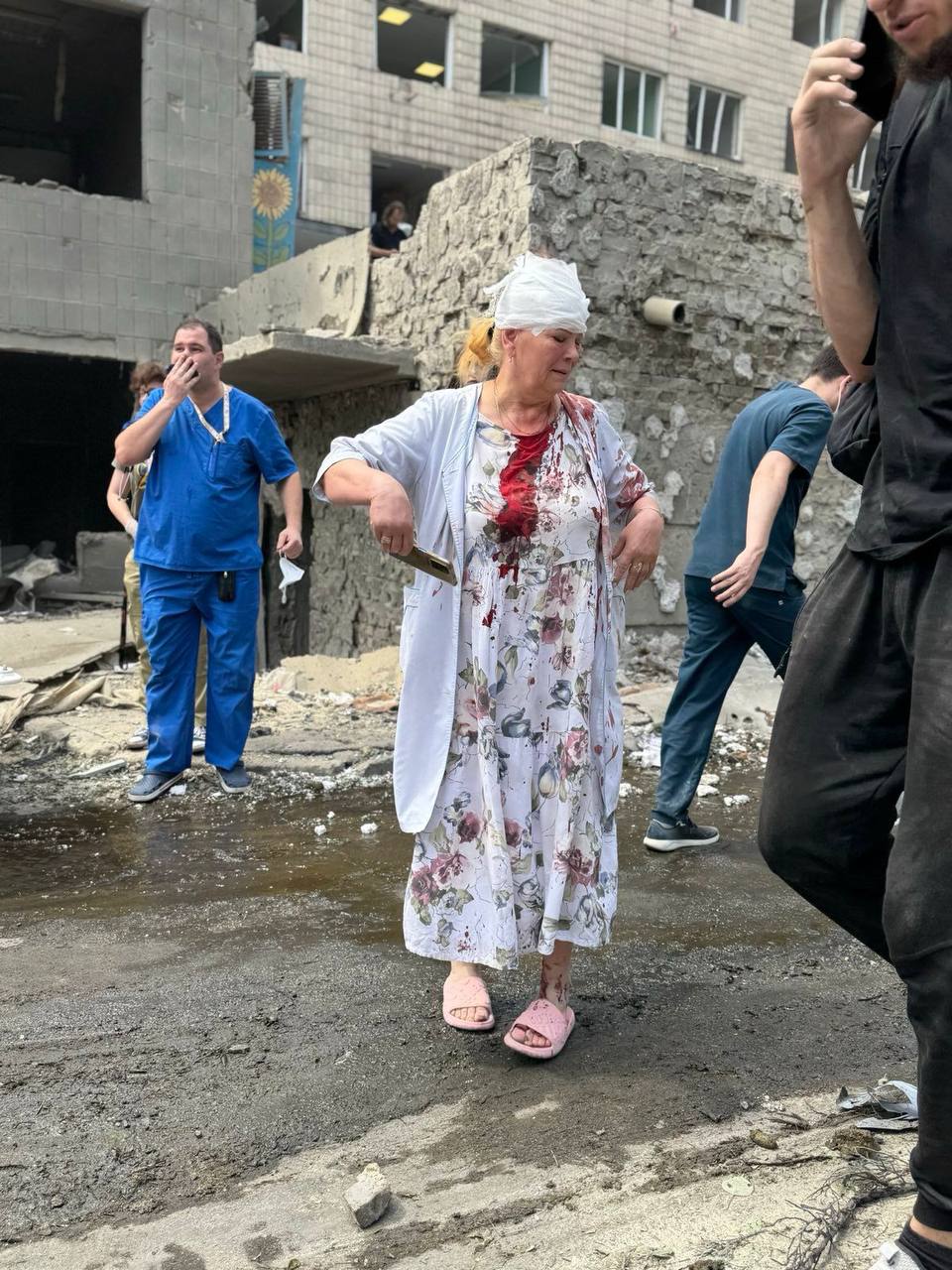 Наслідки влучання по дитячій лікарні "Охматдит" у Києві