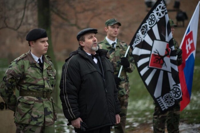 Юрай Чинтула (у центрі) серед членів проросійського військового угруповання "Словацькі солдати". Фото: Slovenskí Branci/ Facebook