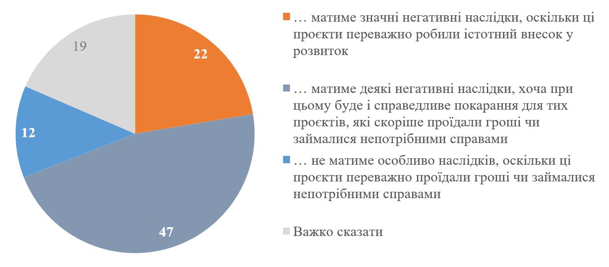 Є певні індикатори, якими ми кожен рік або майже кожен рік "міряємо" суспільство – це геополітичні настрої, ставлення до Росії, готовність до поступок, довіра до президента або різних інституцій в Україні. А є точкові опитування, які виникають ситуативно. Наприклад, ставлення до призупинення фінансування від USAID. Це трапилося, було актуально запитати - ми і запитали. Виявилося, що найбільше респондентів - 47% - вважають, що матиме місце деякий негативний вплив, але разом із цим визнають, що це певне справедливе покарання для тих, хто проїдав гроші чи займався непотрібними справами.