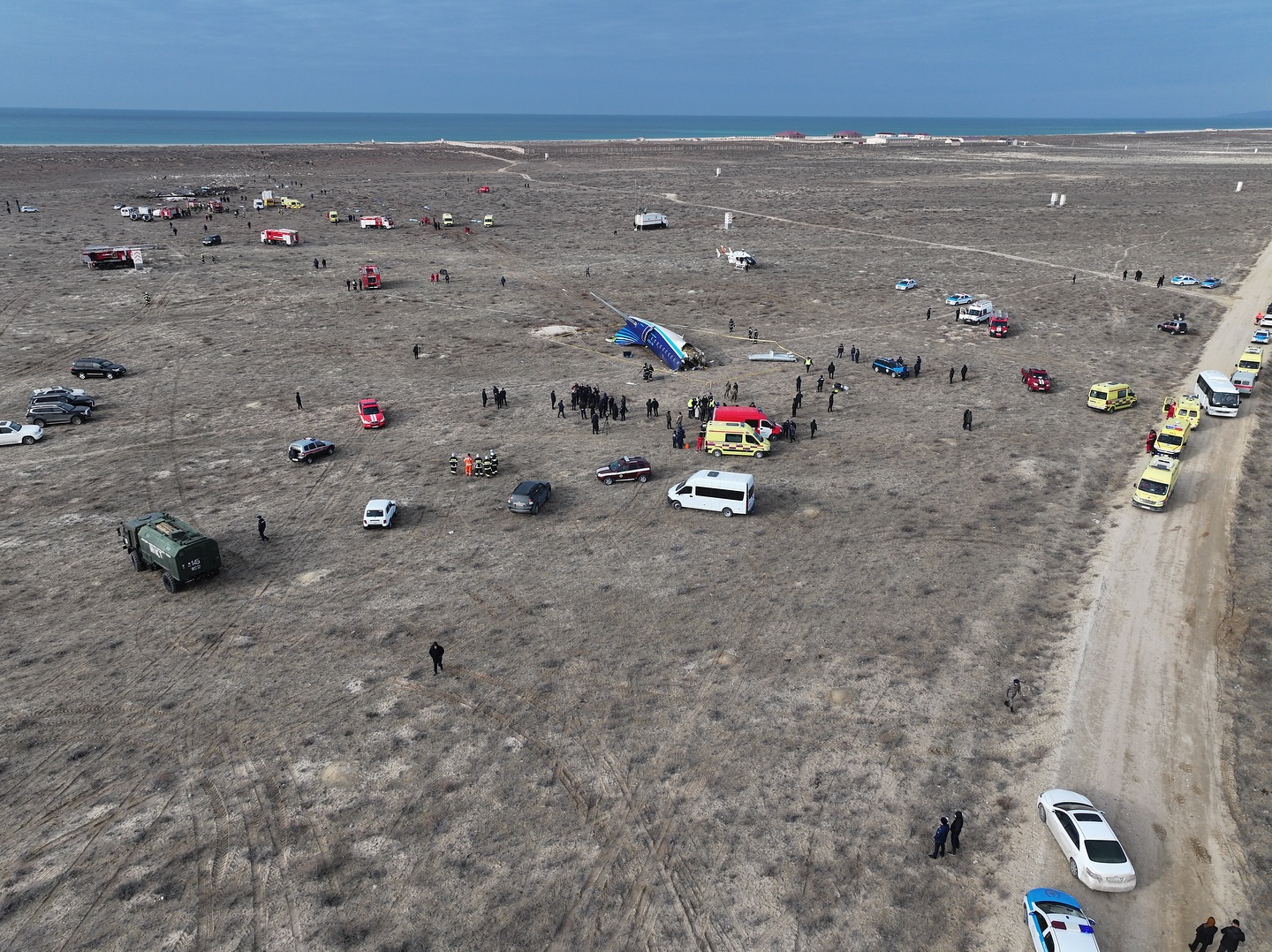 Президент Азербайджану Ільхам Алієв, дізнавшись про катастрофу в повітрі на шляху на саміт СНД у Санкт-Петербурзі, розвернув літак і скликав екстрену нараду в Баку. Він публічно розкритикував Росію за «абсурдні» версії та зажадав вибачень, компенсацій та прозорого розслідування. Путін вимовив мляві вибачення, але вину не визнав. У відповідь Азербайджан закрив у Баку «Російський дім» та призупинив рейси до російських міст, включаючи Сочі та Уфу.