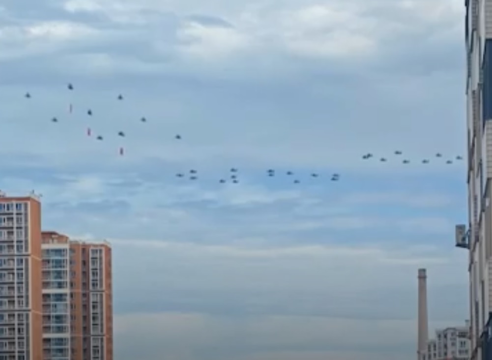 Відразу 80 бойових гелікоптерів у строю пролетять над Пекіном. Фото: стоп-кадр відео cctv1.cntv.cn