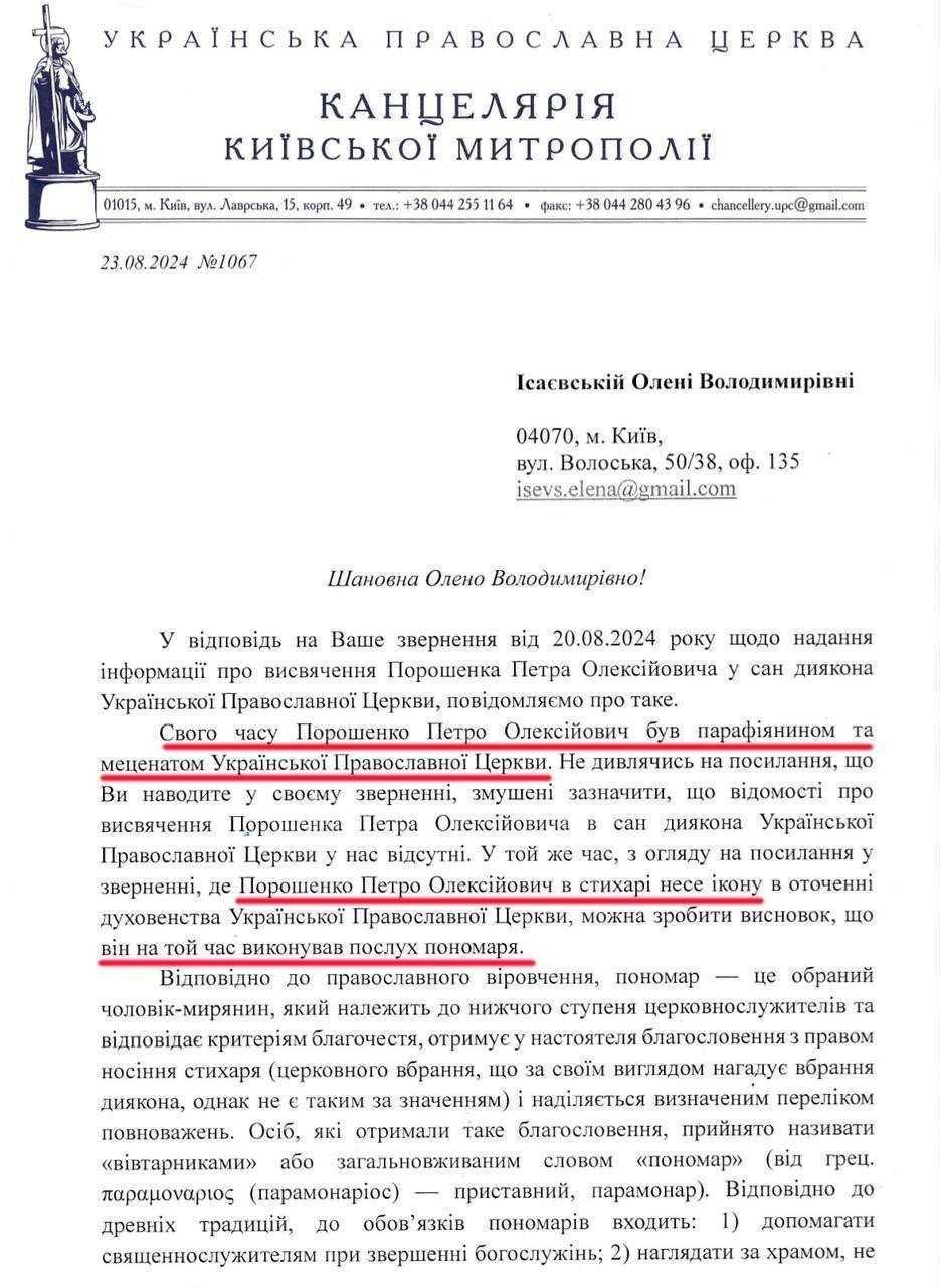 «І Янукович, і Азаров – колишні керівники Порошенка (працював в їх урядах міністром) – вдавали із себе глибоко віруючих людей, водили дружбу з головним попом московії Кірілом і колекціонували ікони. Тому Порошенко і служив в московській церкві для особистої кар’єри. У його архівах є спільні фото з очільниками МП, а в інтернеті – зображення, де він у церковному вбранні несе ікону. Це ще раз доводить, що для Порошенка віра завжди була інструментом політичної кар’єри», – пише Олещук.