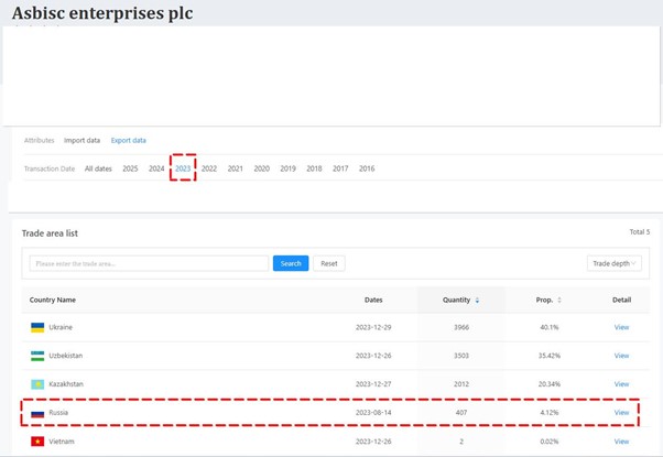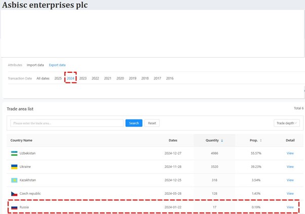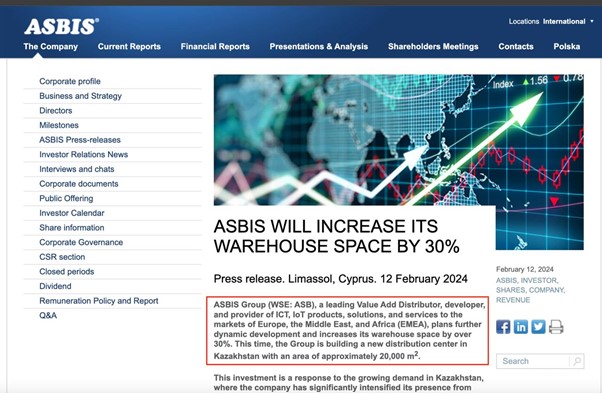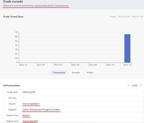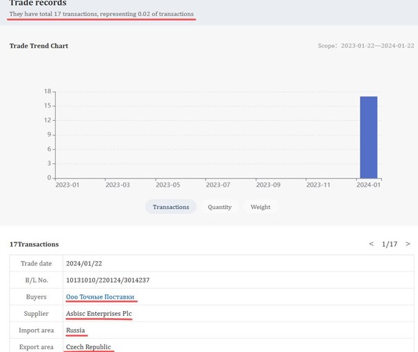 Згідно з митними деклараціями, з 24 лютого 2022 року по 22 січня 2024 року ASBIS оформив щонайменше 2333 постачання до Росії.