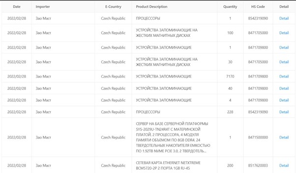 Зі складів у Чехії й Китаї до Росії відправляли: