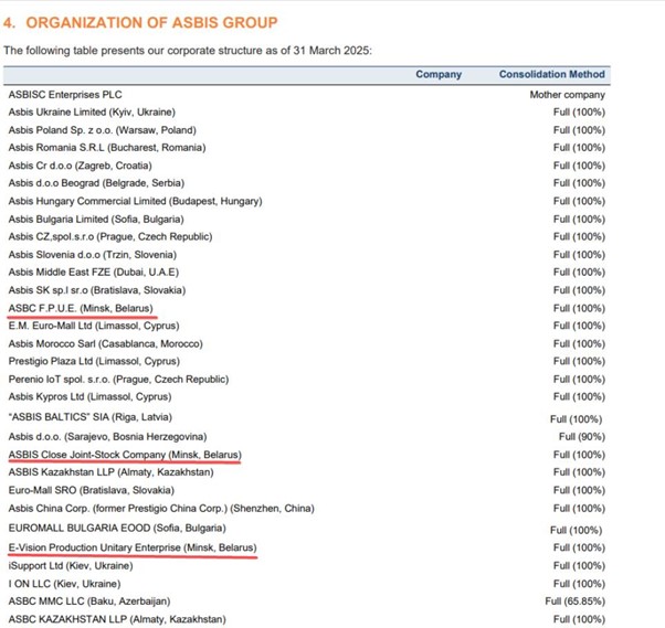 Проте, за даними відкритих джерел, до серпня 2025 року ASBIS все ще був розміщений на сайті Apple як дистриб’ютор у Білорусі. Лише наприкінці липня це згадування зникло, а сторінку переадресували на іншу адресу. Нині в Білорусі офіційними реселерами техніки Apple вказані лише A1 та МТС.