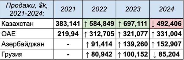 У звітності це виглядає «органічним розвитком» на нових ринках. У географії постачань — це класичний паралельний імпорт: товар перетікає через юрисдикції, де простіше з паперами і складніше з відповідальністю. Коли у 2024-му частка Казахстану в загальних продажах падає до 16,37%, компанія пояснює це «незаконною торгівлею» конкурентів і змінами в законодавстві. Але в той самий час у Казахстані з нуля росте склад на 20 тисяч квадратів, а в Центральній Азії — пульсують канали, які суміжні з РФ не на словах, а на дорогах і складах.