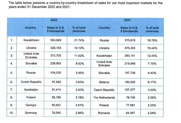 Казахстан у звітах перетворюється на головний хаб постачання. Якщо у 2021-му він давав 12,45% продажів ASBIS, то у 2022 — вже 21,74%, у 2023 — 22,77%. Кожна п’ята гривня обороту — через країну, яка стала головним транзитним вузлом для російського ринку.