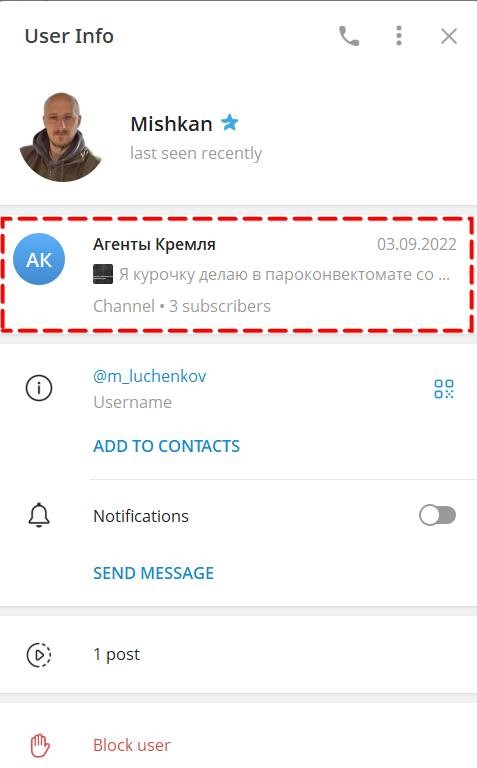 Саме Лученков, за даними OSINT-аналітиків, у вересні 2022 року створив телеграм-канал “Агенты Кремля”, де публікував пропагандистські пости на підтримку російського вторгнення та обговорював тему “русской весны” у чатах пропагандиста Сергія Карнаухова.