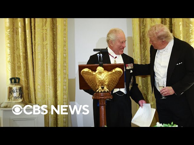 Під час офіційної державної вечері в Білому домі, що відбулася напередодні, король Великої Британії та Північної Ірландії Чарльз III вручив президенту США Дональду Трампу незвичний подарунок - великий латунний дзвін, на якому було вигравірувано його ім’я. Про це пише ВВС та Unilad.