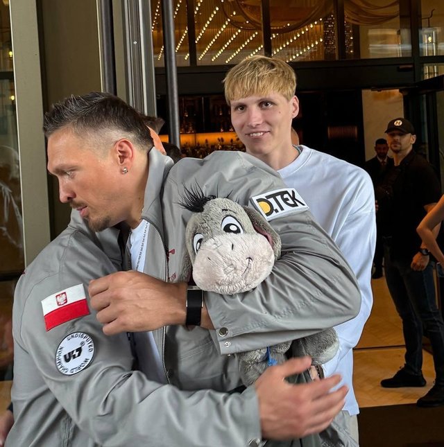 Плюшевого віслюка, подарованого дочкою, наш боксер бере на всі свої поєдинки. Фото: ФБ Олександр Усик