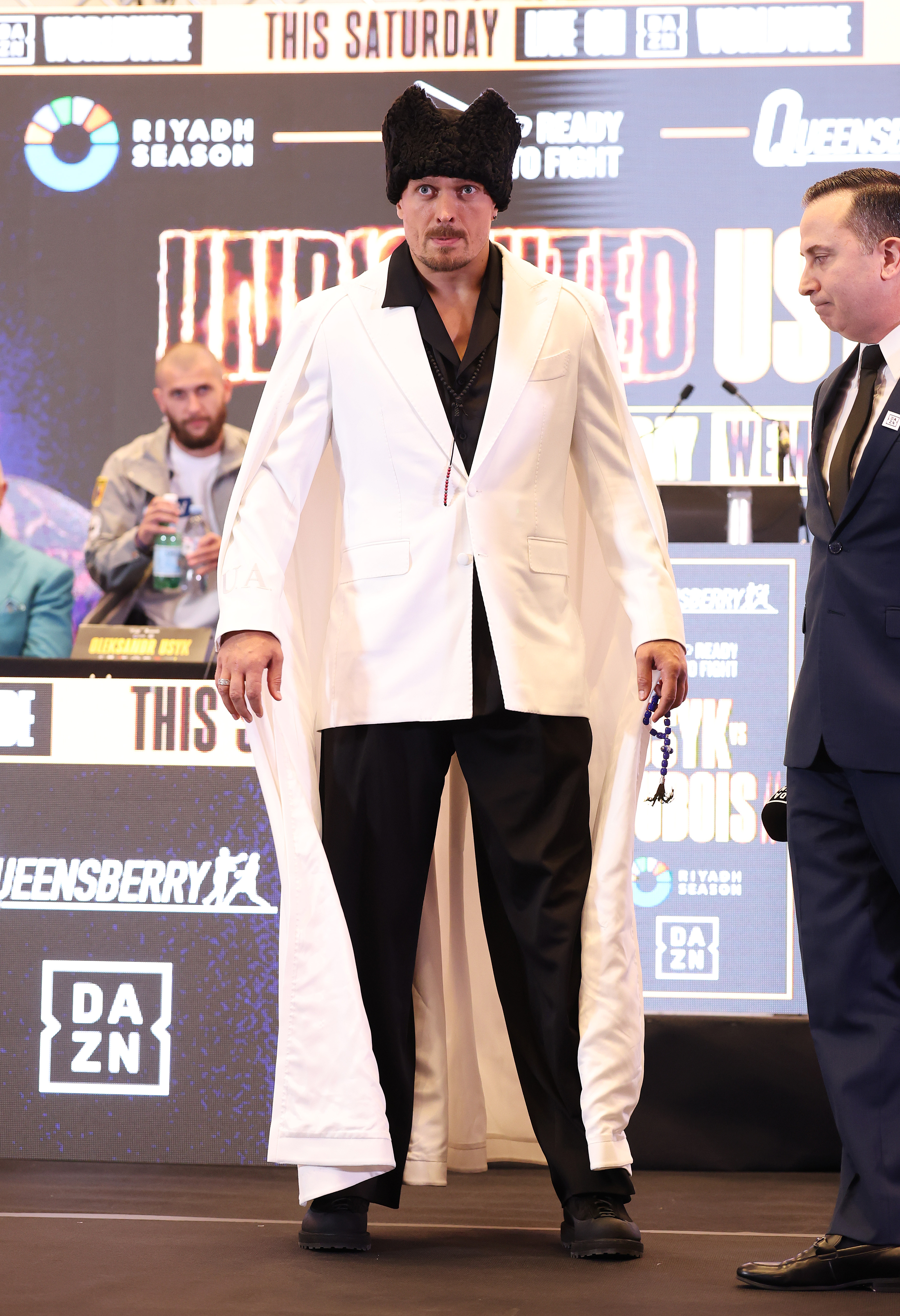 Олександр Усик продовжує обігрувати козацьку тематику у своїх образах. На пресконференції з Даніелем Дюбуа український чемпіон з'явився в образі від бренду Damirli, родзинкою якого стала папаха. Подібний головний убір часто носив гетьман Павло Скоропадський.
