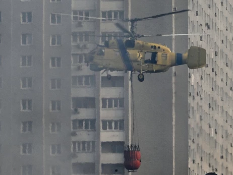 Після нічної атаки Київ у диму, ДСНС задіяла для гасіння пожеж гелікоптер